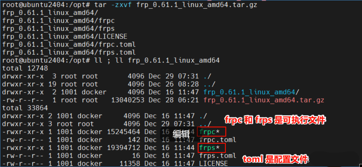 tar -zxvf frp_0.61.1_linux_amd64.tar.gz