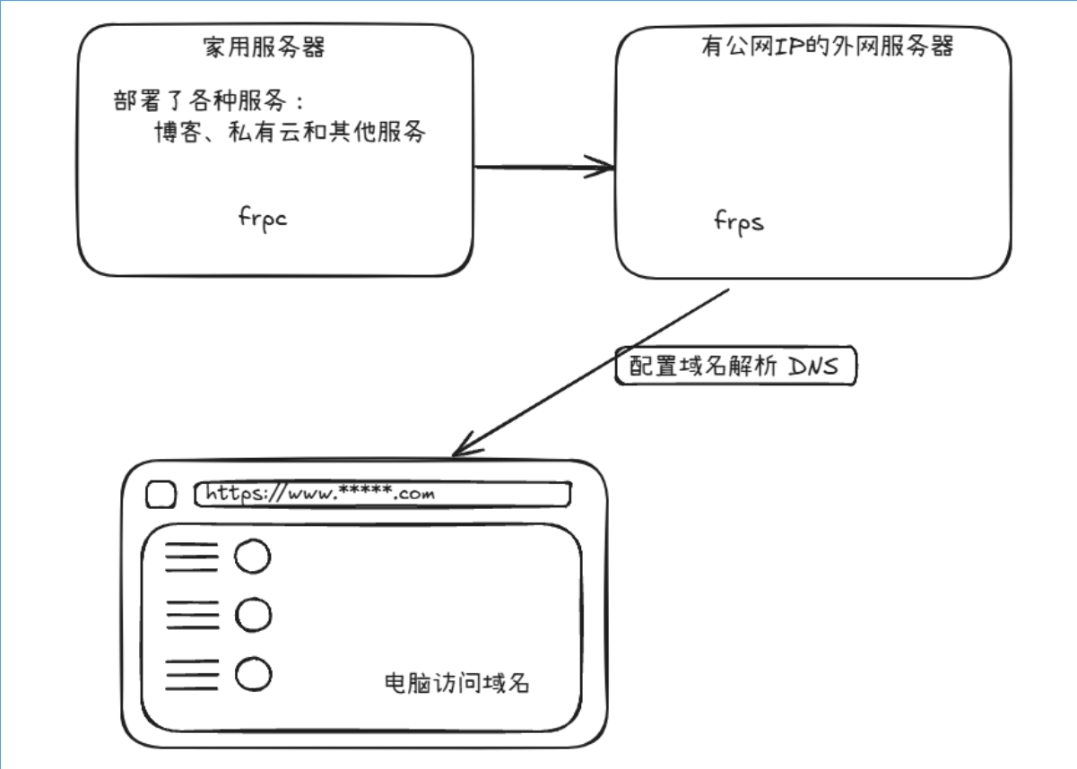 可以通过 FRP 的服务端和客户端实现复杂的反向代理需求。自定义域名